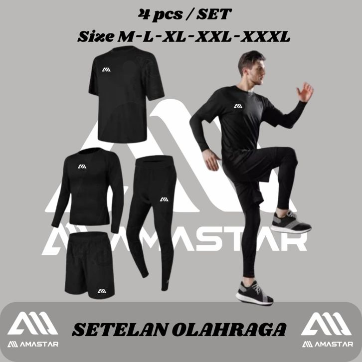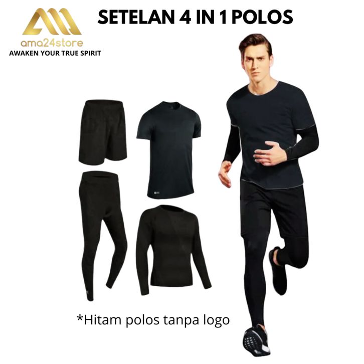 Setelan Jersey 4 IN 1 Atasan Kaos Jersey Baselayer Celana Pendek Lejing Sepak Bola Badminton Running Renang Tenis
