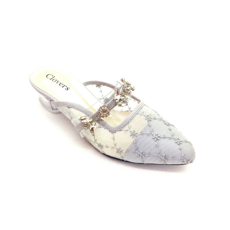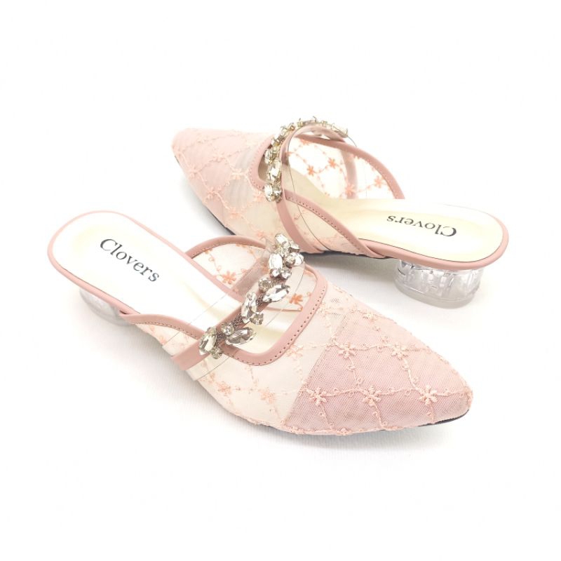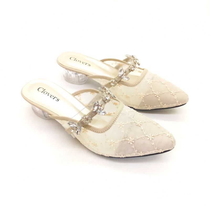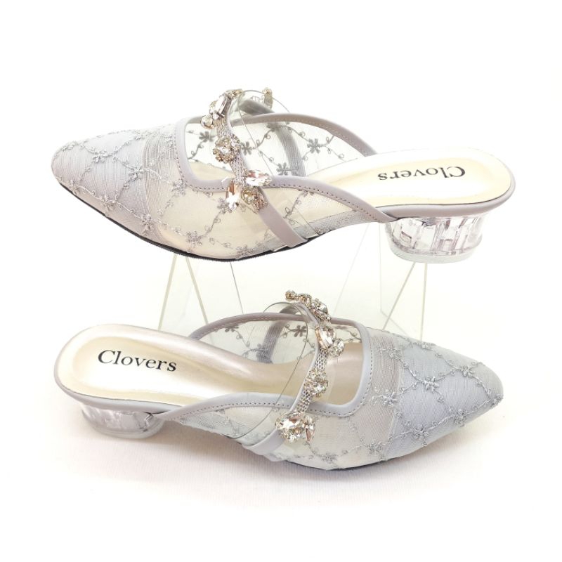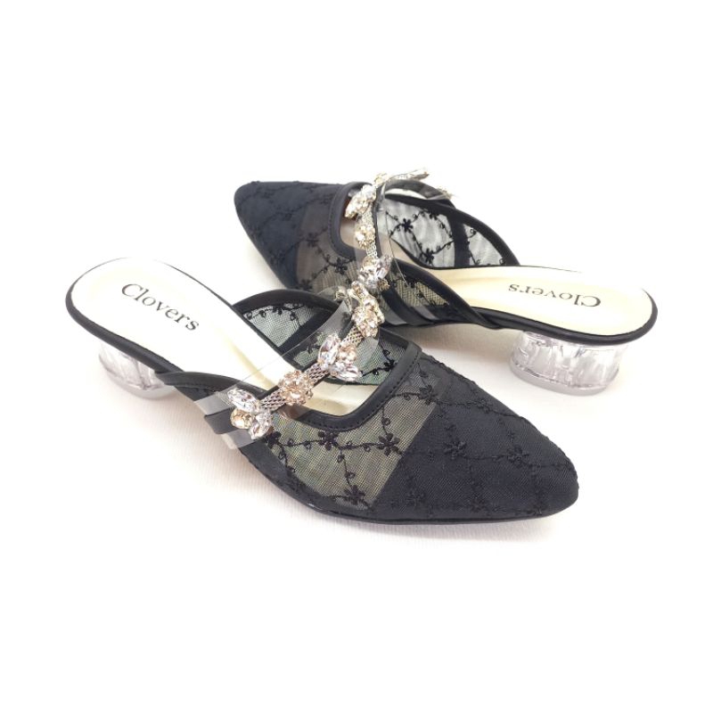Sendal Wanita Brukat Pesta Hak kaca 3cm Cloversshoes