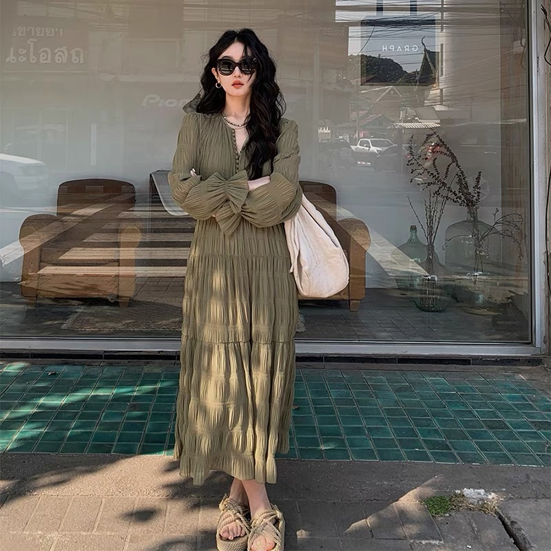 Dress Putih Panjang Sifon Casual Wanita Simple Korean M505