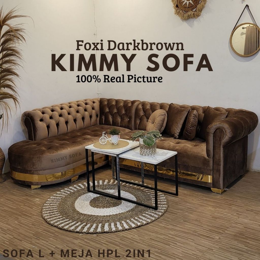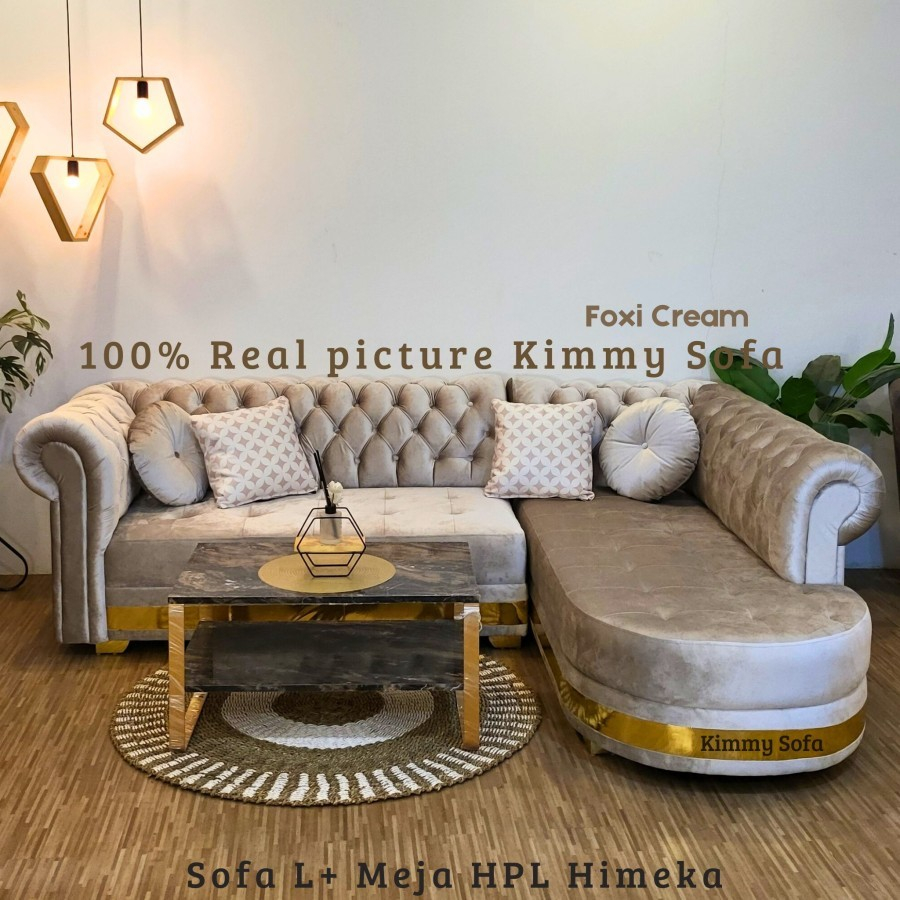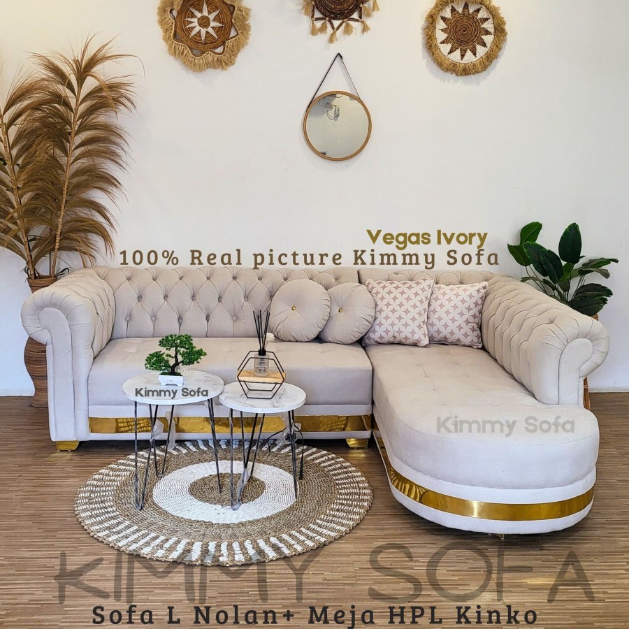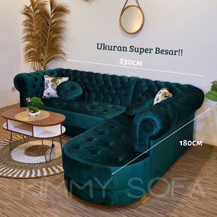 Kimmy Sofa L Santai Chesterfield Classic Nolan Kancing Bahan Import sofa ruang tamu,sofa minimalis moderen terbaru,sofa