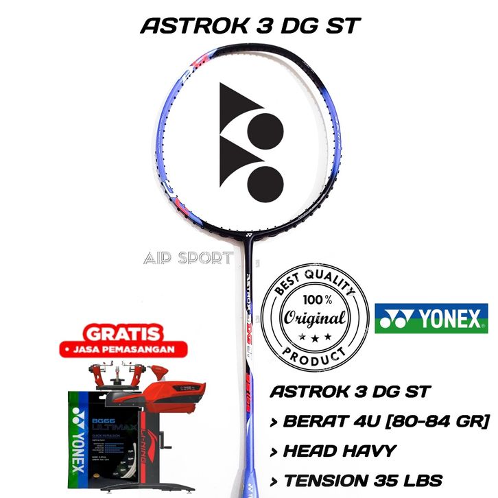 RAKET BADMINTON YONEX ASTROK 3 DG HF ST ORIGINAL FREE PEMASANGAN SIAP PAKAI GIFT PROMO POTONGAN ONGKIR