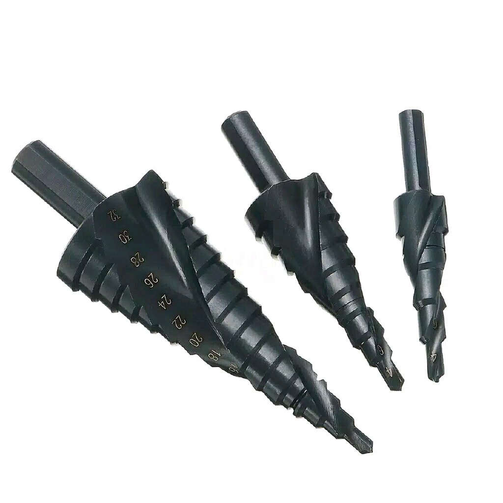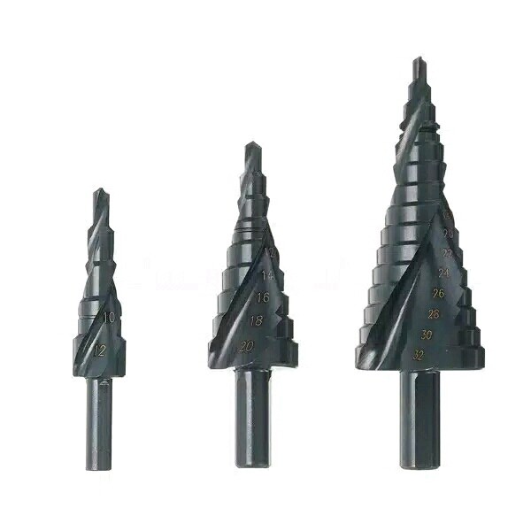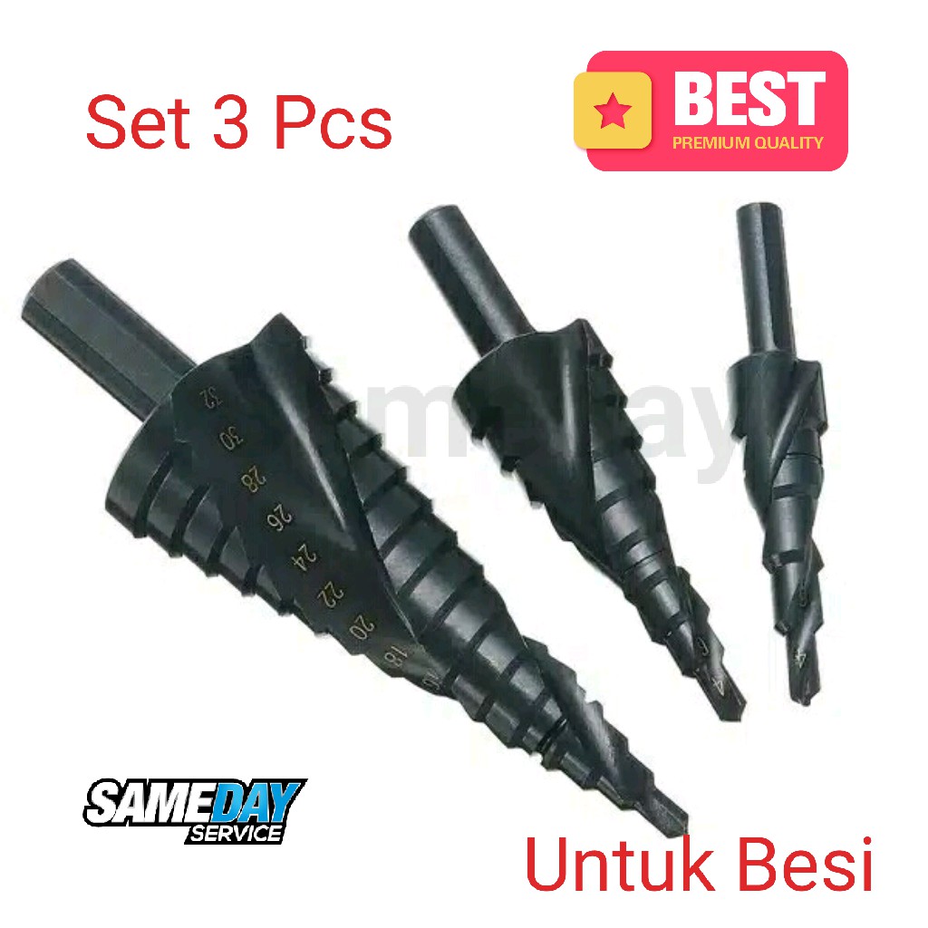 Mata Bor Besi Pagoda Multi Step Drill HSS Coating Set 3Pcs Titanium Nitride