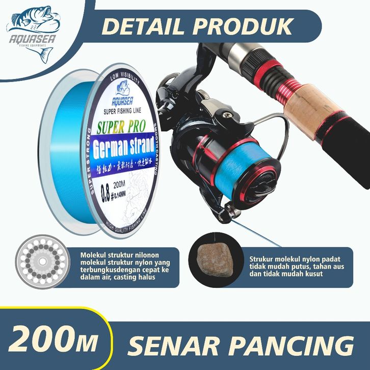 Tali Pancing Germany200m Senar Pancing Premium Invisible Bahan Nilon Tahan Lama Panjang