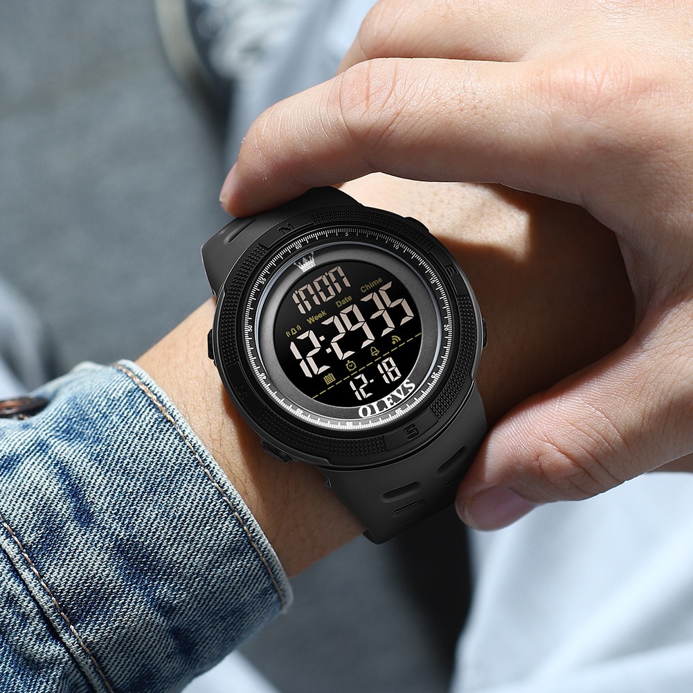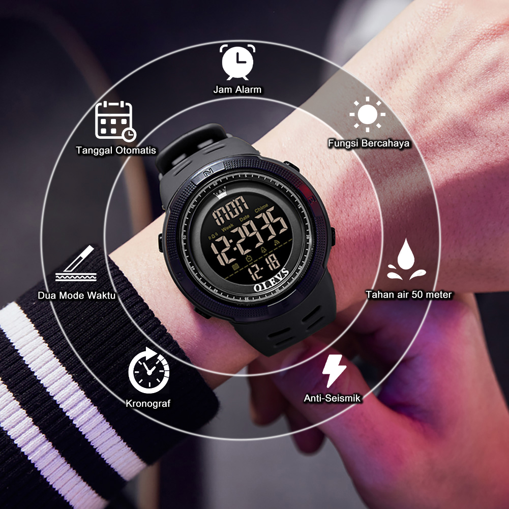 OLEVS Jam Tangan Digital Pria Original Anti Air 50 Meter Multifungsi LED Alarm Men Watch Hitam