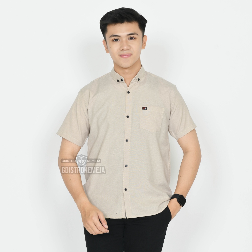 (Gratis Ongkir) Kemeja pria polos pendek Warna Brown lengan pendek kasual bahan katuun premium distro