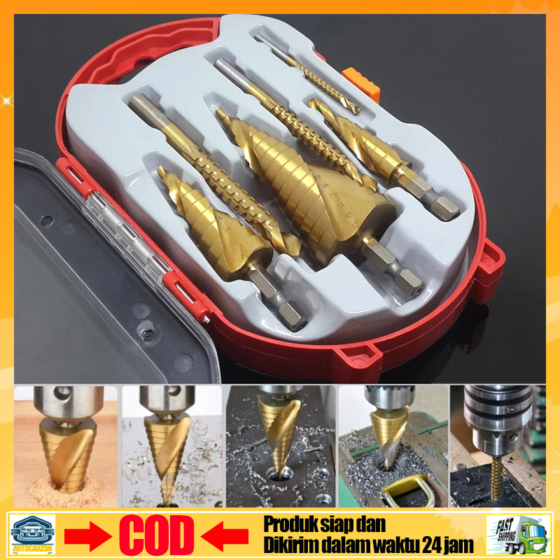 ✦Ready ya,✦ 3/6pcs Mata Bor Pagoda Spiral HSS Steel Titanium Coated Mata Bor Pagoda Besi Kerucut Cone Drill Hole Saw Unt