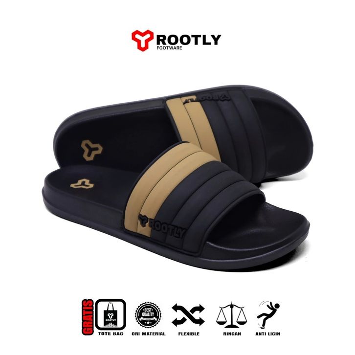Rootly - Sandal Pria Wanita Full Karet TPR Wave Cream / Sendal Slop / Sandal Murah / Sendal Cowok