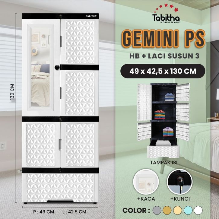 Tabitha Lemari Pakaian Gantungan Serbaguna Full Kunci Cermin Minimalis - Tabitha Gemini