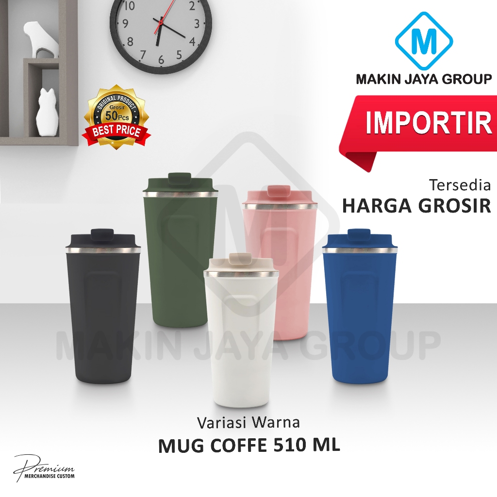 MUG COFFE 510ml Tumbler Kopi Portable Travel Cup / thermos coffee mug stainless / thermo cup termos botol minum BISA CUS