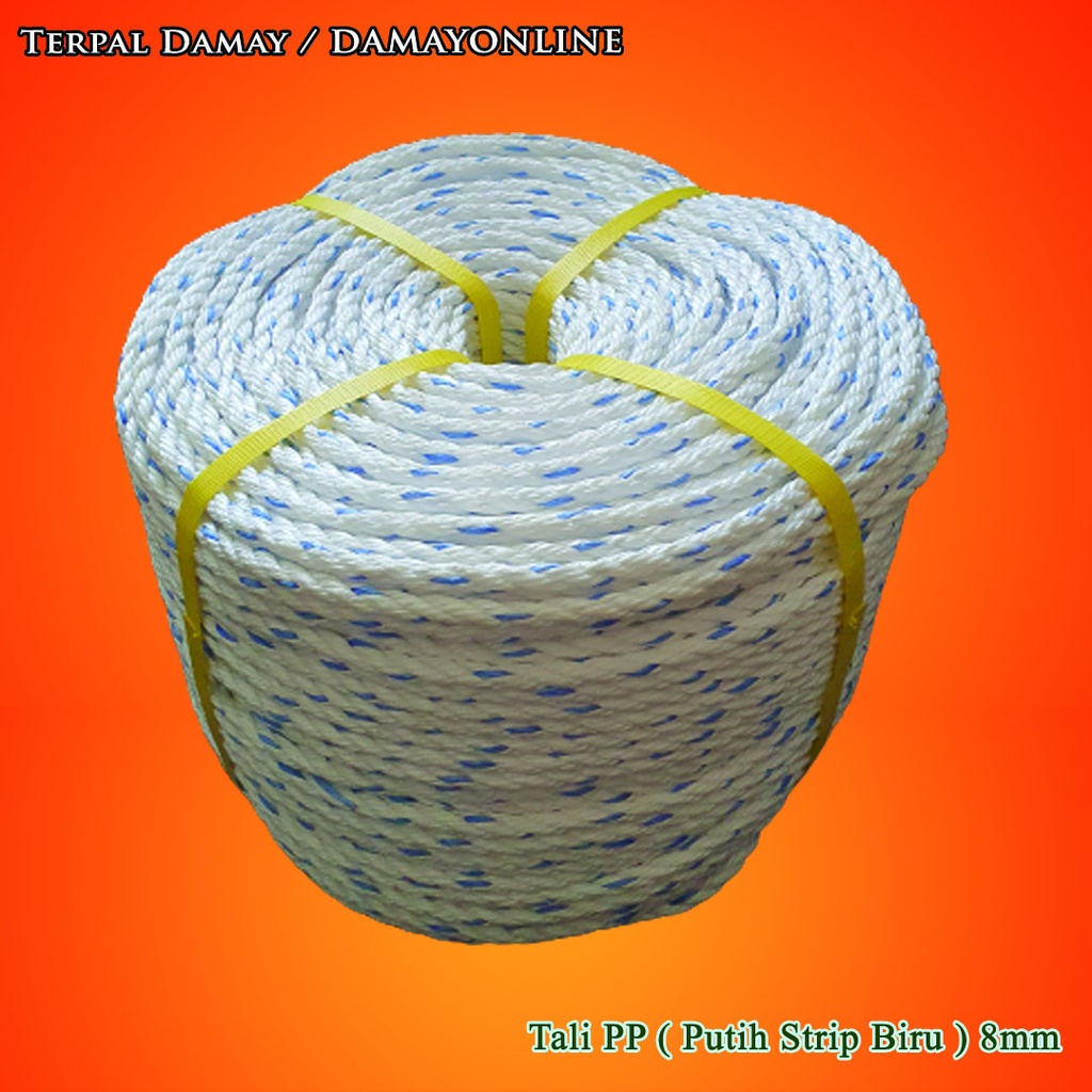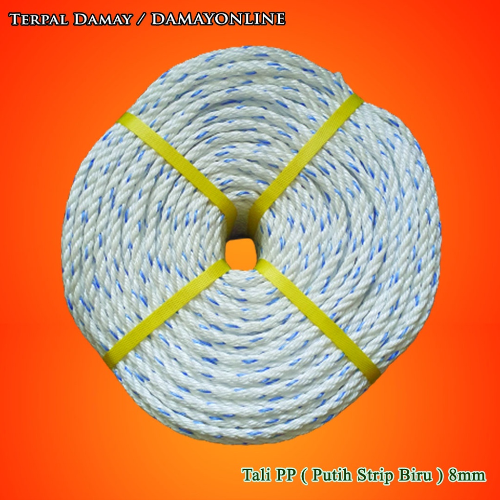 Tali Tambang 8mm Putih Strip Biru / Rol ( Harga Per Rol )
