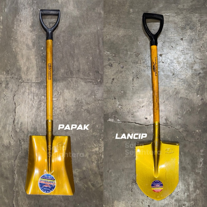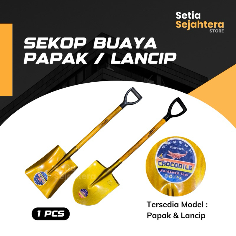 Croile Sekop Pasir Gagang Kayu Cap Buaya Papak Lancip Skop Berkebun Konstruksi - 1 Pcs