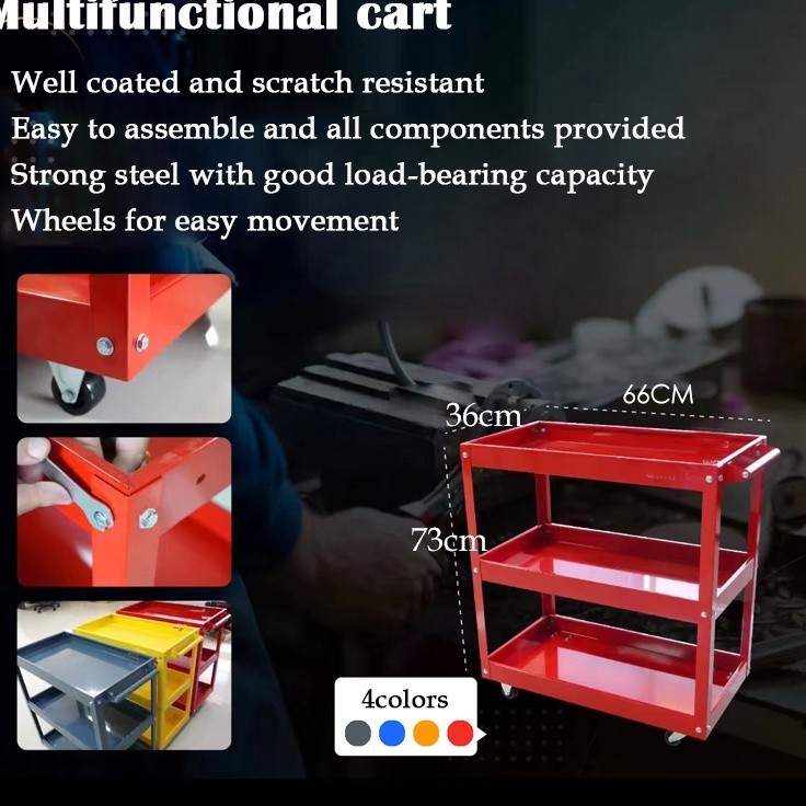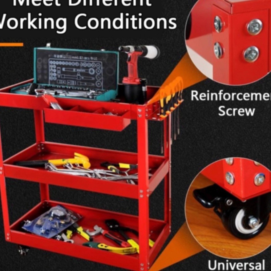 410KG/Troli Bengkel Rak 3 Susun Perkakas Trolly Trolley Bantalan 410kg Kotak Peralatan Troli Dengan Peralatan Penyimpana
