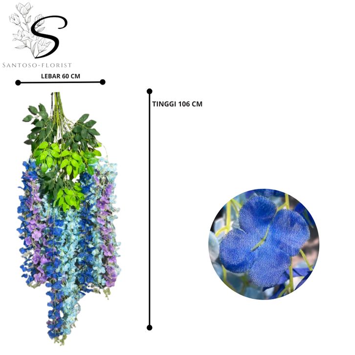 BUNGA WISTERIA JUMBO 12 PCS 1 LUSIN TANAMAN BUNGA PLASTIK BUATAN HIAS DEKORASI BUNGA SINTETIS TERLARIS