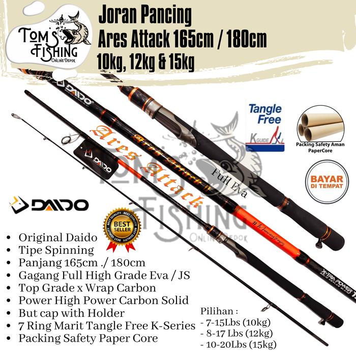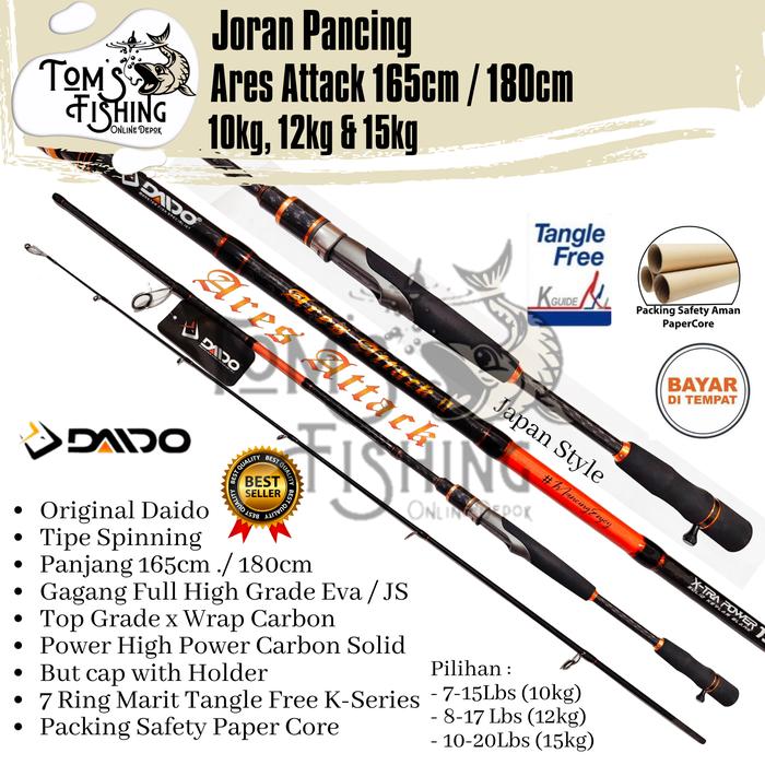 Joran Pancing Daido Ares Attack 165cm / 180cm Full / JS (10kg-15kg) Carbon Solid Murah - Toms