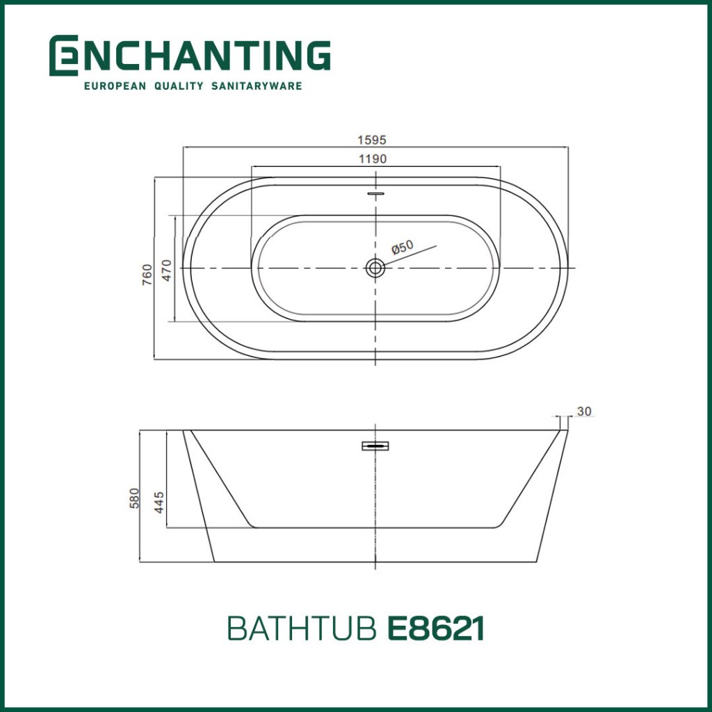 ENCHANTING Bathtub Free Standing Kamar Mandi BathTub Acrylic E8621