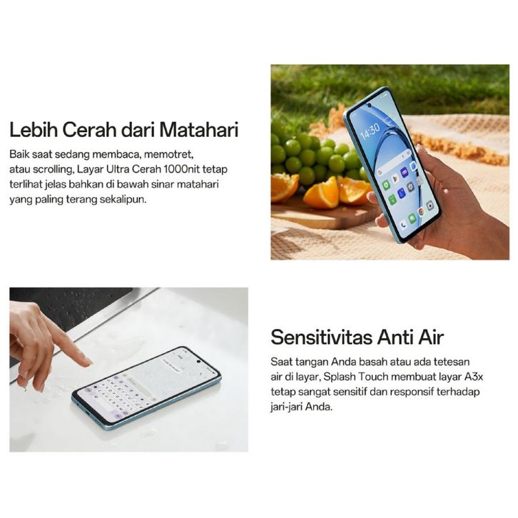 HP OPPO A3X RAM 6/128GB GARANSI RESMI Snapdragon® 6s 4G Gen1 SUPERVOOCTM 2.0 45W Kamera utama 8MP 5100mAh