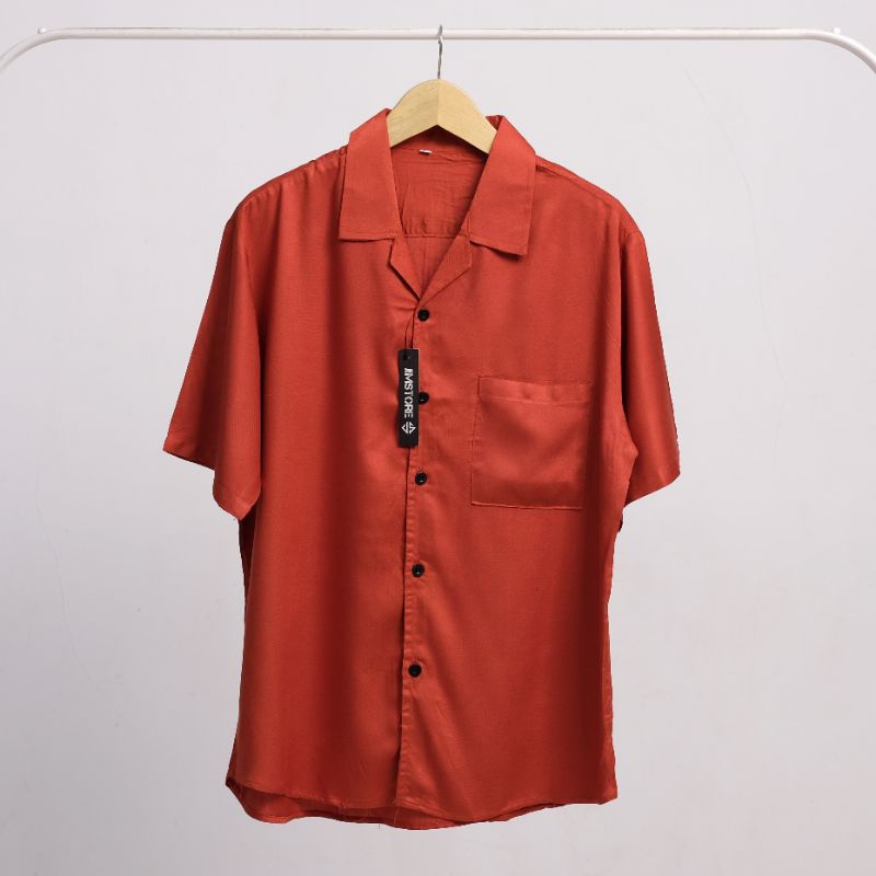 (Gratis Ongkir) Kemeja Katun Rayon Polos Brown Lengan Pendek Pria Wanita