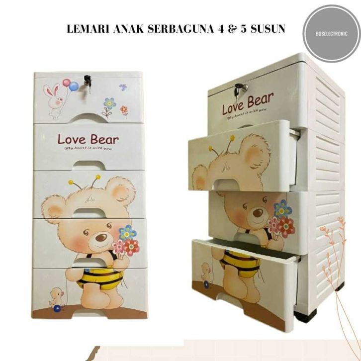 LEMARI PAKAIAN PLASTIK SUSUN 4 SUSUN 5 LEMARI PLASTIK BABBY KARAKTER LUCU TERMURAH SIAP KIRIM HARI INI