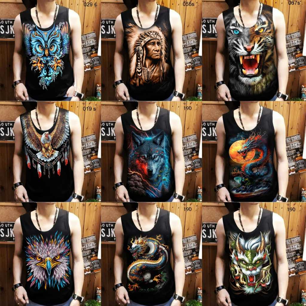 Paket bundle isi 5 singlet pria bahan combed /kaos dalam/tanpa lengan/lekbong motif bergambar