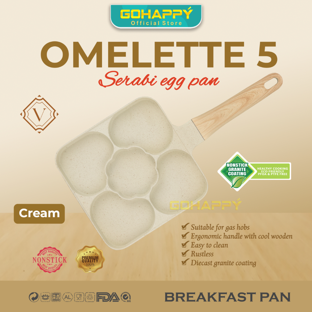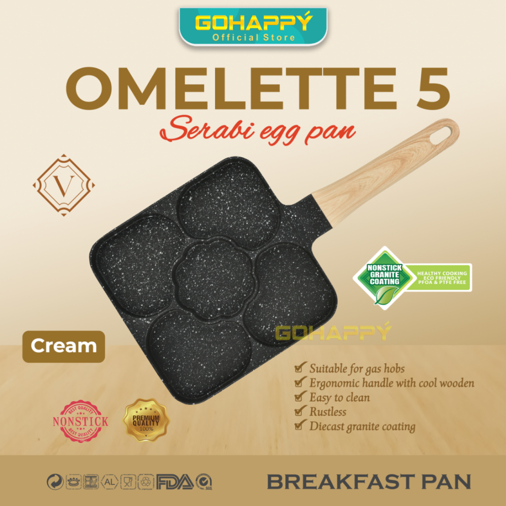PROMO OMELETTE 5 Cetakan Telur Ceplok WAJAN Serabi Granit Teflon Anti Lengket Valry Breakfast maker