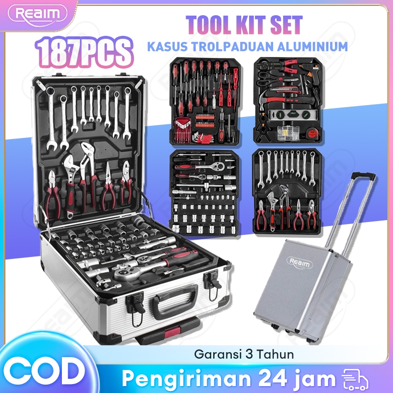 Reaim Tool Kit 187pcs Perkakas Bengkel Dan Rumah Koper Lengkap Koper Abu Free Koper 187 Koper Alat Bengkel Perkakas Leng