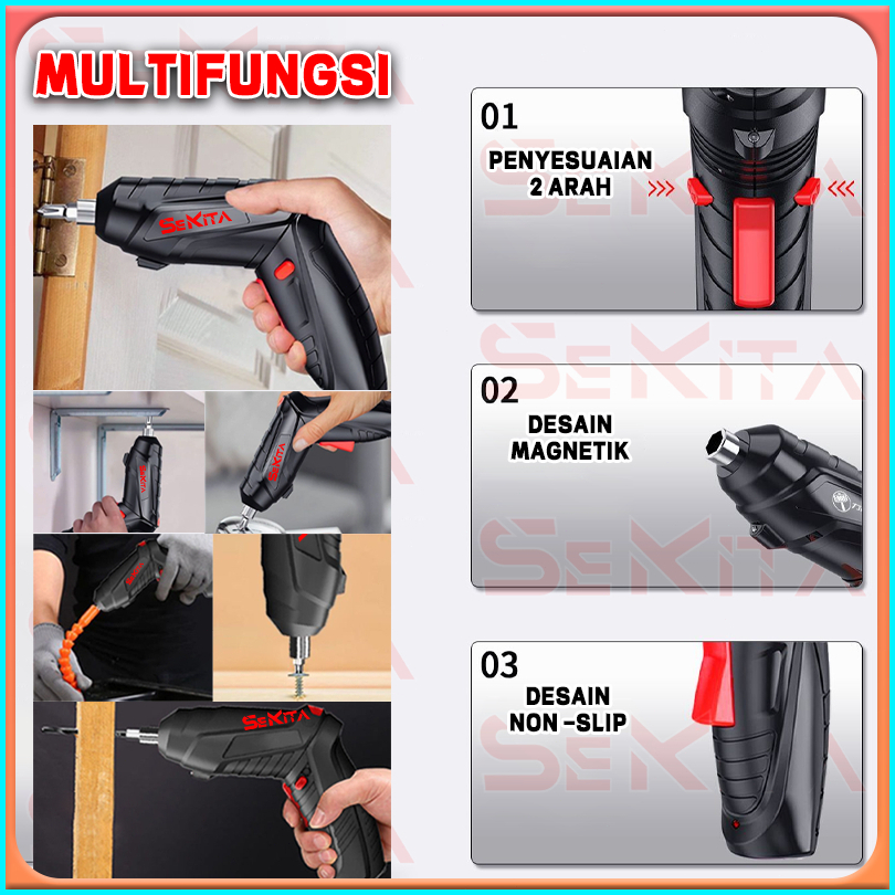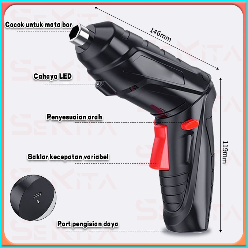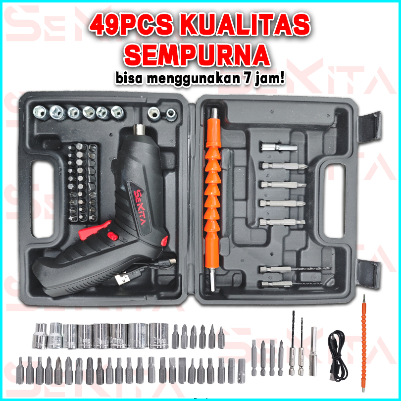 Sekita Set 49pcs Cordless Screwdriver 4.2 V Mesin Bor Baterai Mesin Bor Set