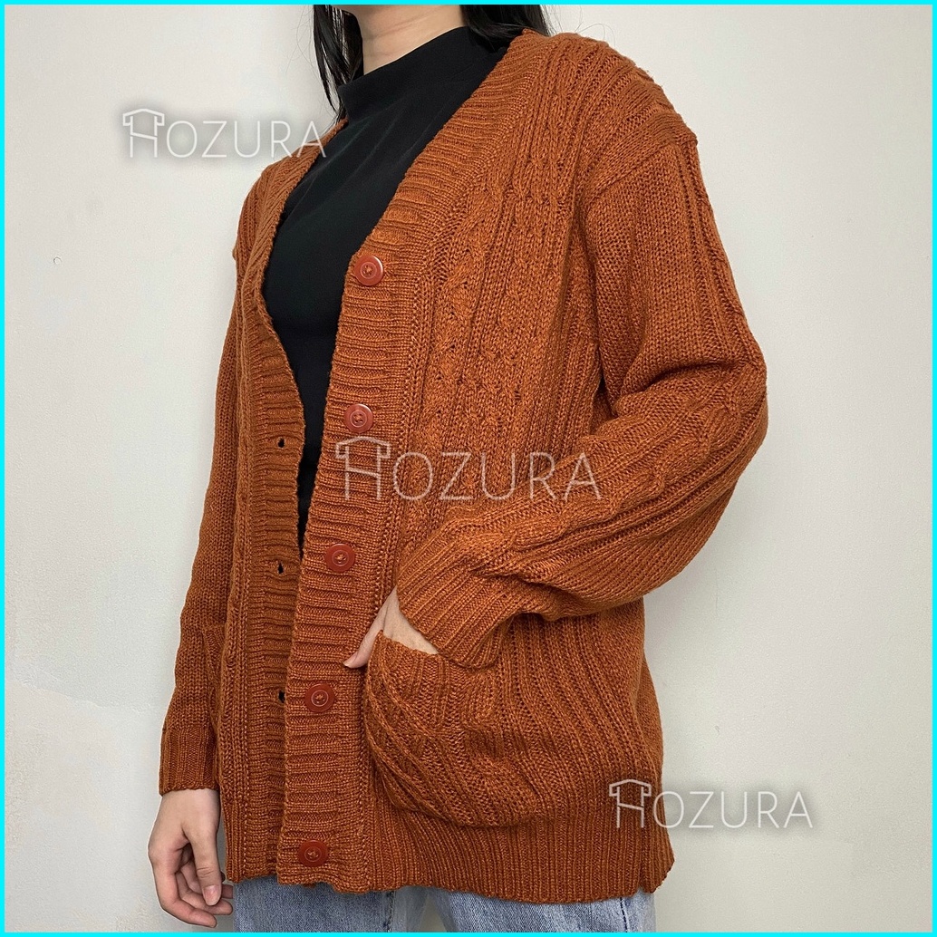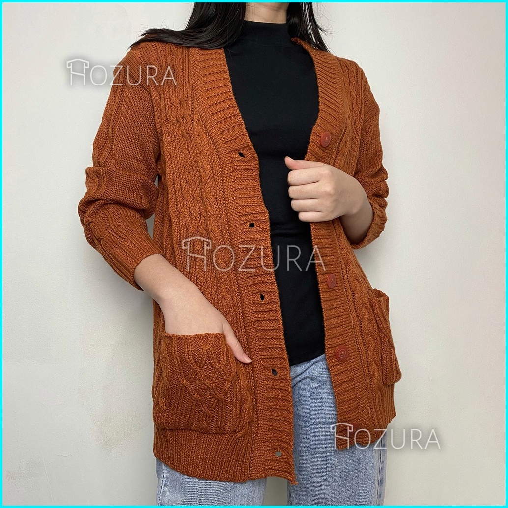 Hozura - Cardigan Sweater Rajut Wanita Lanna Batta - Cardigan Rajut Jumbo Oversize Tebal - Outer Wanita - Sweater Korean
