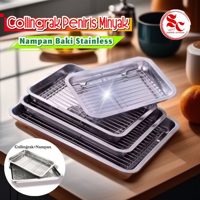 Peniris Minyak Plus Nampan Stainless Penyaji Makanan Food Grade Anti Karat