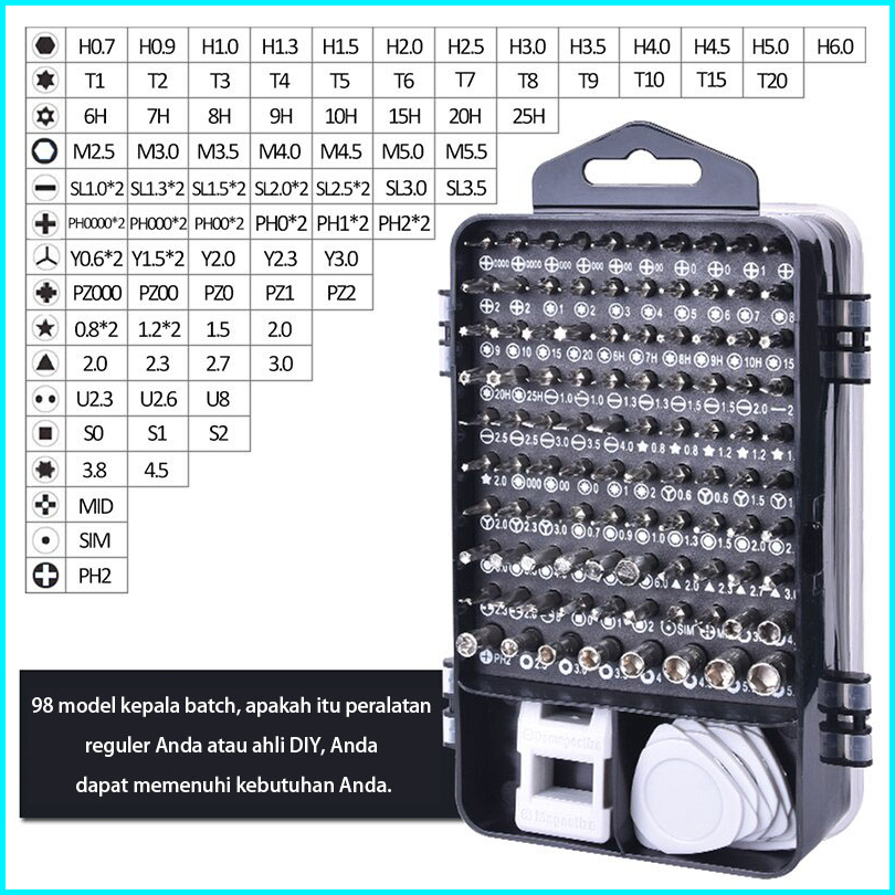 Obeng Full Set 115 In 1 Obeng Set Komplit Serbaguna Mini Alat Service Reparasi Hp