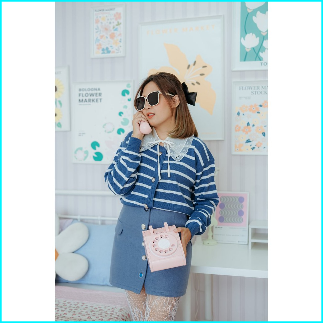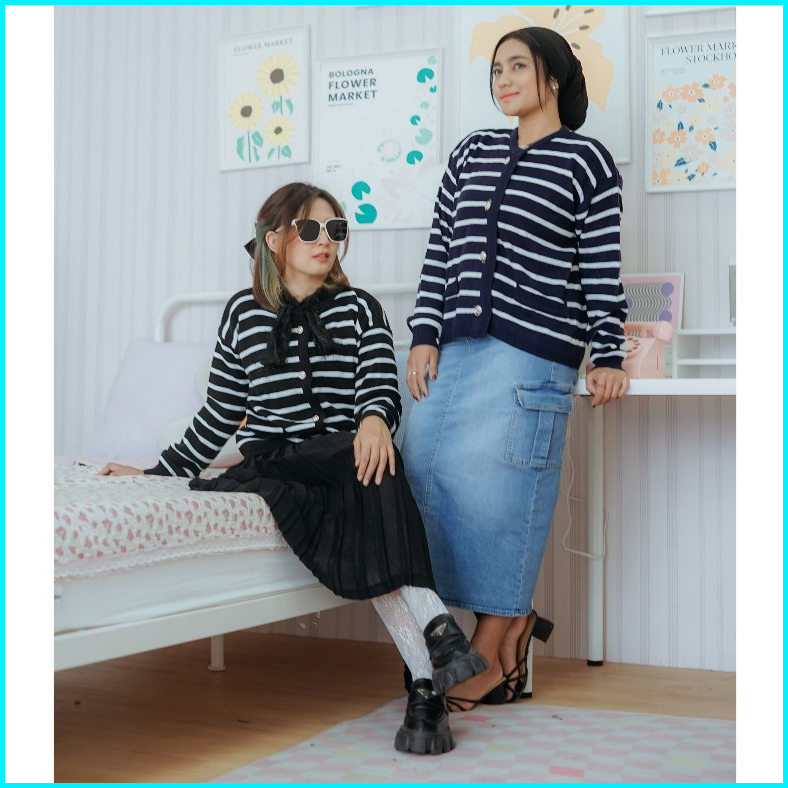 Haylook.id Lalisa Knit Cardy Cardigan Stripe Wanita Bahan Rajut Premium Tebal Korean Style