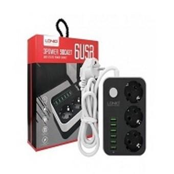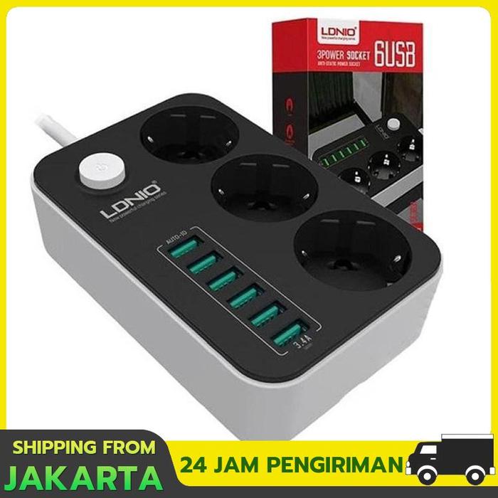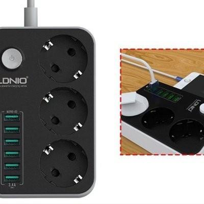Stop Kontak LDNIO 3 Power Socket 6 USB Charging Anti Static Charger HP 3 Socket Power Strip Cord with 6 USB Ports 1.6m