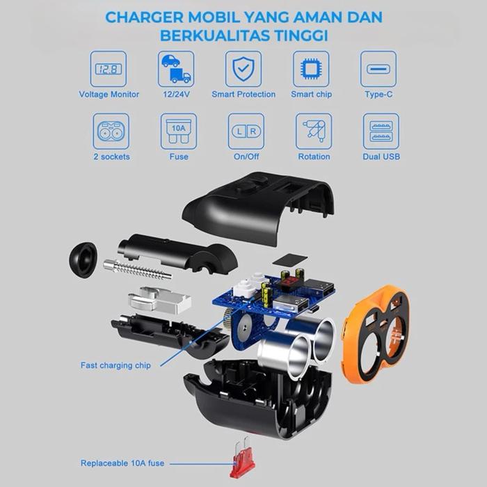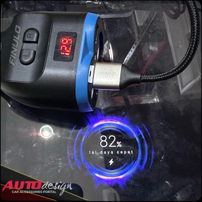 FINULO Charger Handphone Mobil Lighter Socket QC 3.0 Fast Charging Type C PD20W Indikator Voltase Kabel