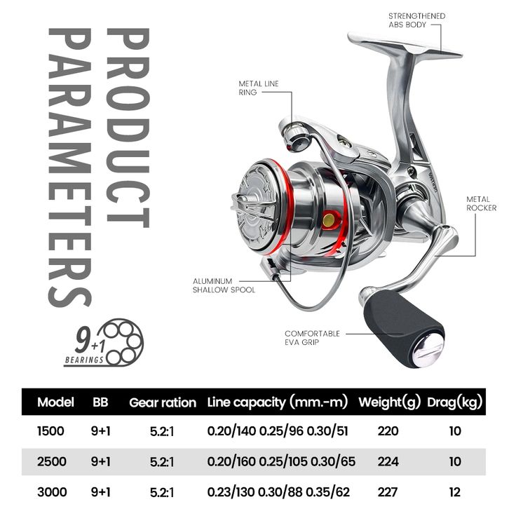 Reel Pancing POWER HANDLE OER SEAHUNTER Spinning Reel Gulungan Pancing,9+1BB 5:2:1 Aluminum Spool, Drag 10-12KG #RYOBIS