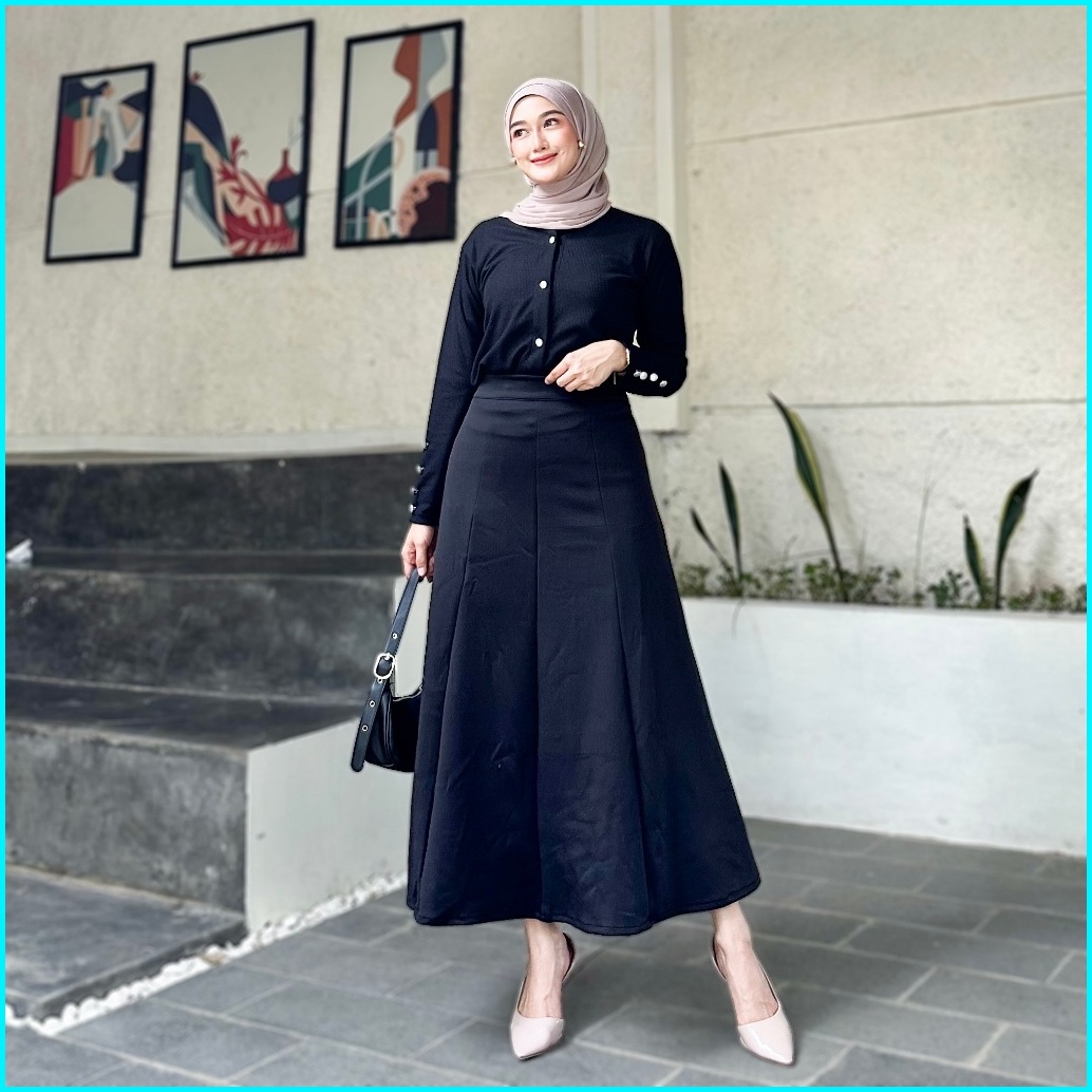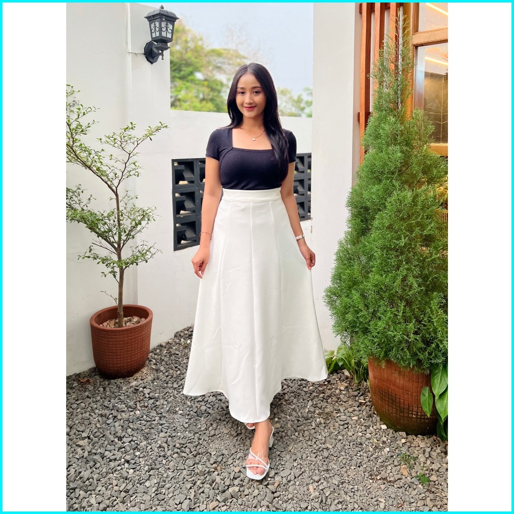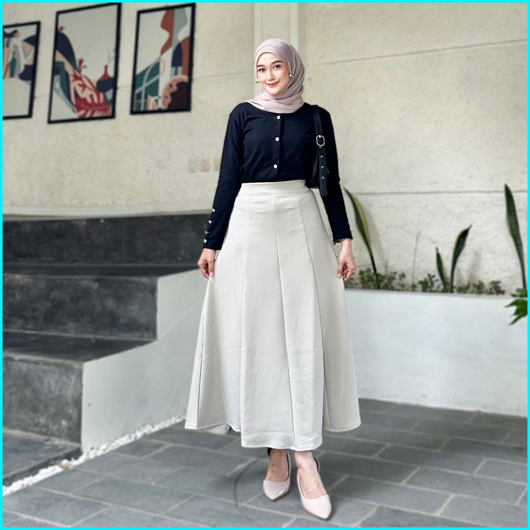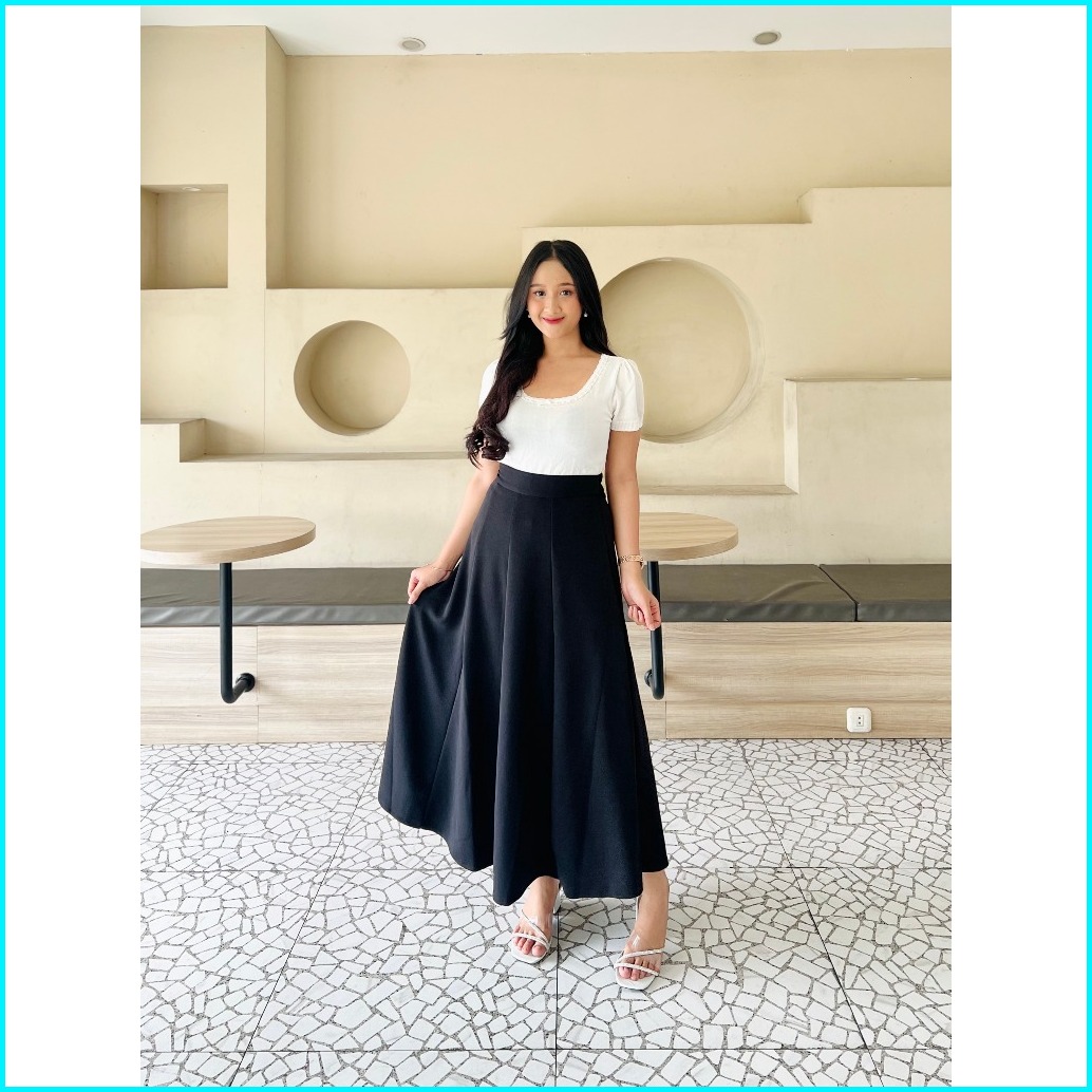 Audy Skirt - Rok Scuba Flare Wanita - Rok Basic Polos - Rok Panjang Wanita - Korean Maxi Skirt Rok Wanita Scuba