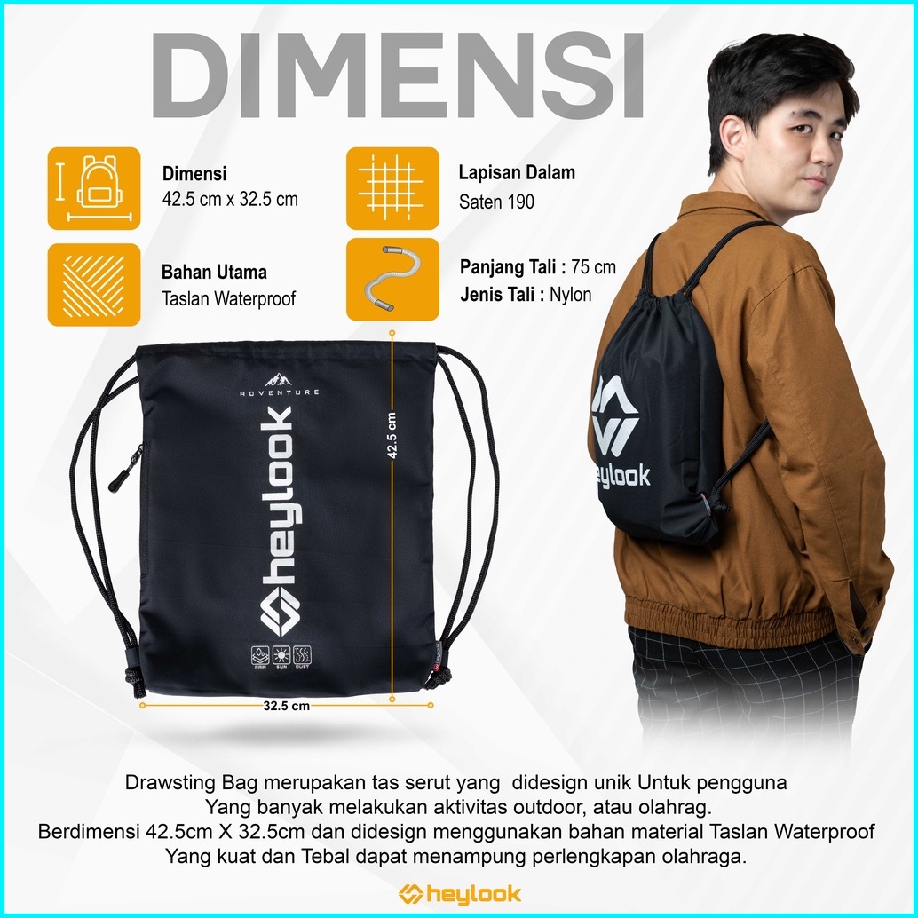 Heylook - Tas Ransel Serut Pria Wanita Gymsack Drawstring Olahraga