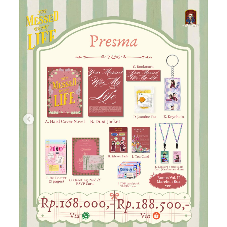 Humas 0.1, Humas 0.2, Humas 0.1 (+ Dust), Humas 0.2 (+ Dust), Sekjen, Presma, Bundling SC, Bundling HC, Bundling SC (+ Dust), Bundling HC (+ Dust)