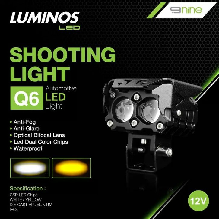 Lampu Tembak Mobil Original NINE LAMPU TEMBAK / SOROT 2 MATA Q6 DAN Q6 PRO 2 WARNA WHITE YELLOW DEVIL RED/ICEBLUE/PURPL