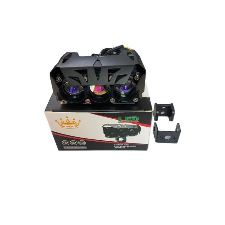 Lampu Tembak Mobil Original Lampu Tembak SQL 3 Mata Blue Lens Dual Fan Body Alumunium Super Bright 60 Watt