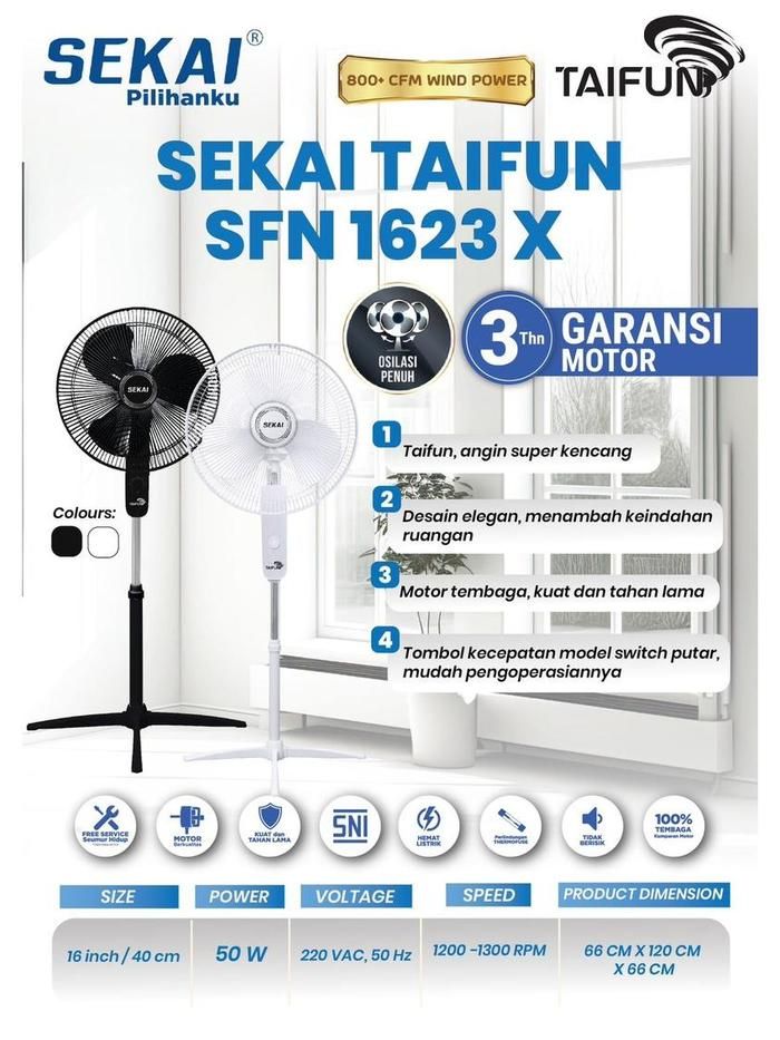 SEKAI Kipas Angin Berdiri / Stand Fan 16 Inch Taifun Series -SFN 1623 X B 1623X 1623B SFN1623