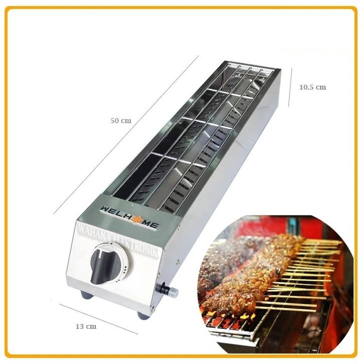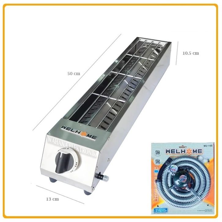 WELHOME Kompor Gas Griller panggangan / bakaran sosis / ayam /sate /ikan 65 cm plat stainless paket regulator