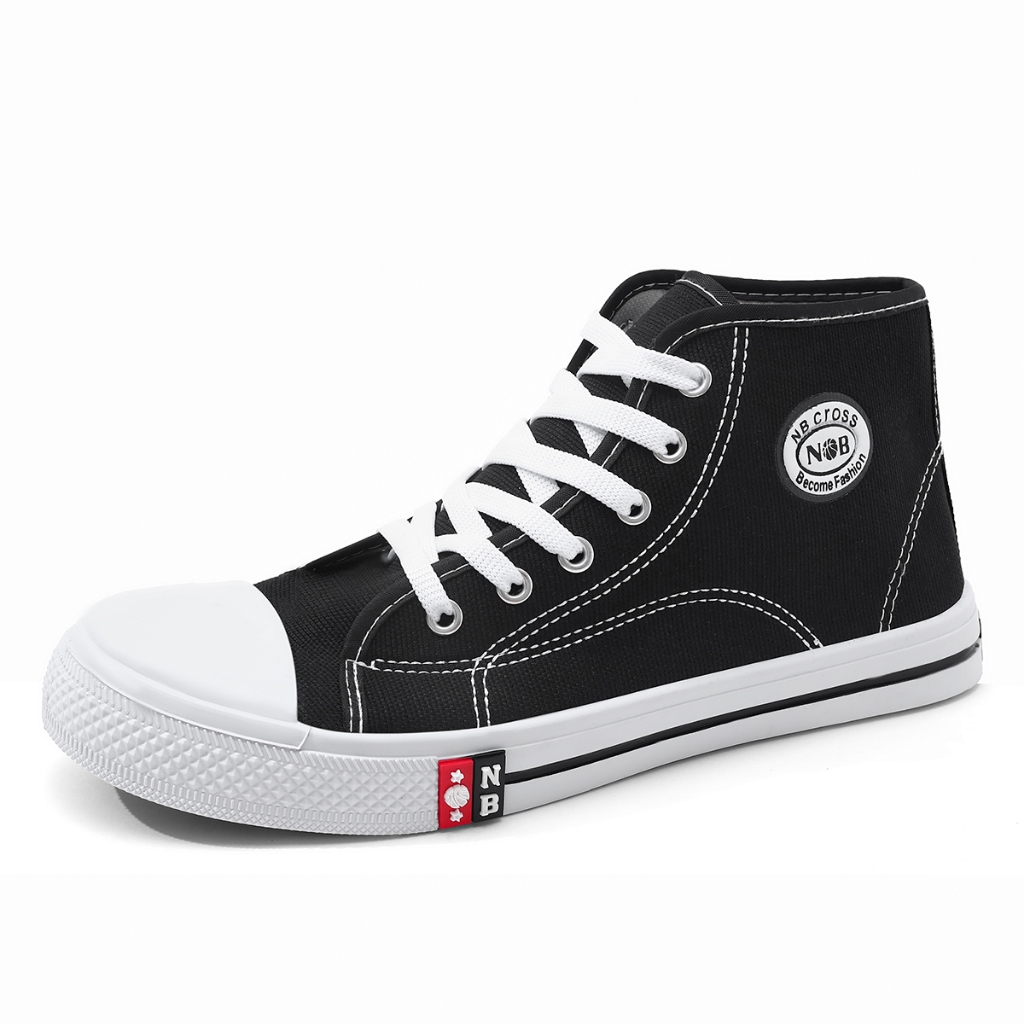 N BOLA B Sepatu Sekolah Formal Tali Bahan Canvas Tinggi Sneakers Sekolah Hitam Cewek Cowok