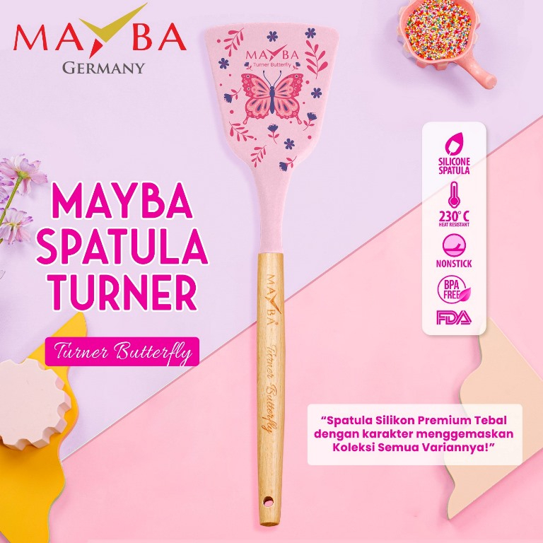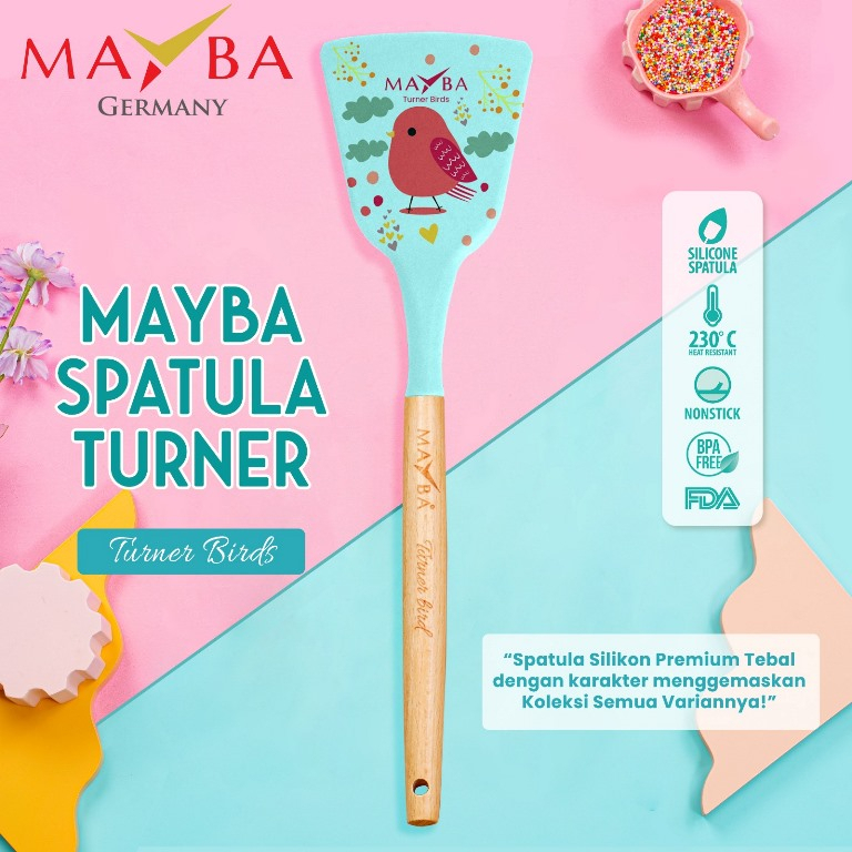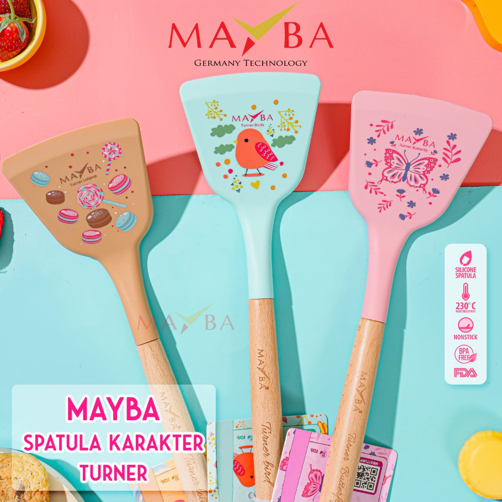 Promo Spatula Silicone TURNER ASLI MAYBA Sendok Dapur Masak silicon kitchen set wooden handle