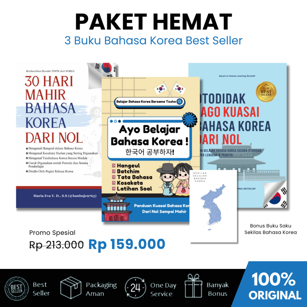 Paket Murah 3 Buku Bahasa Korea Best Seller (30 Hari Mahir + Ayo Belajar Korea + Otodidak Korea)