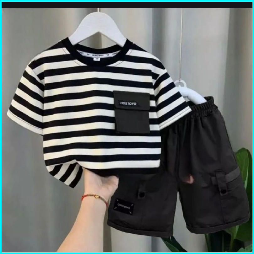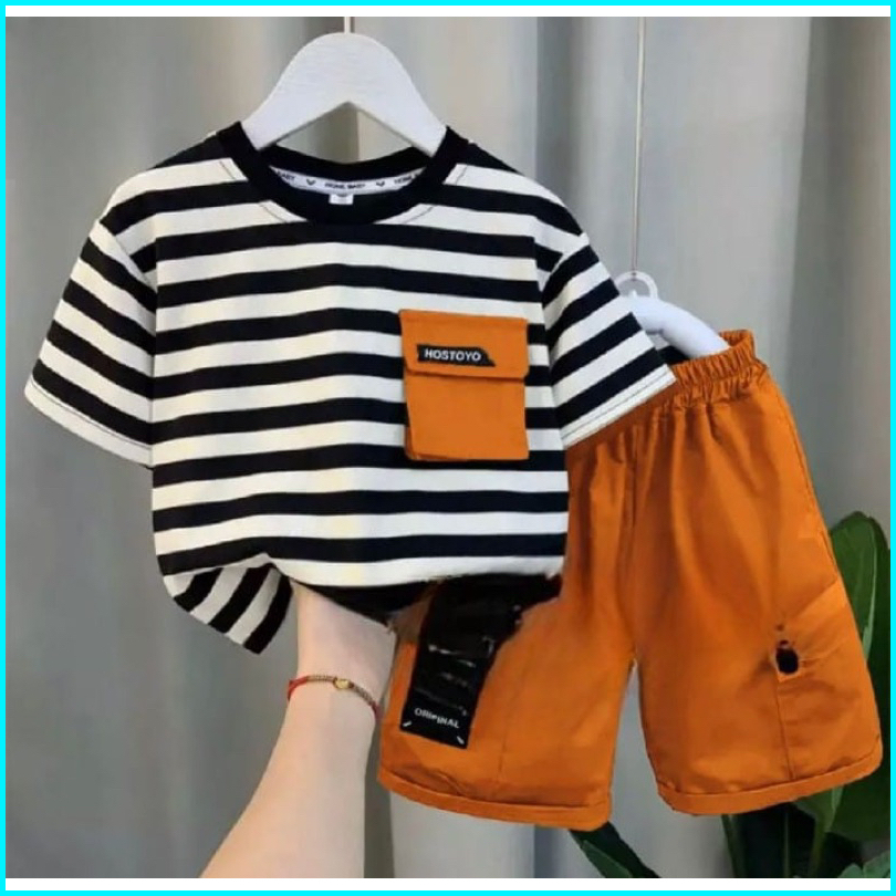 Kaos Anak Dan Celana Pendek Anak Motif Salur 1-5 Tahun Ardan Baju Anak Grosir