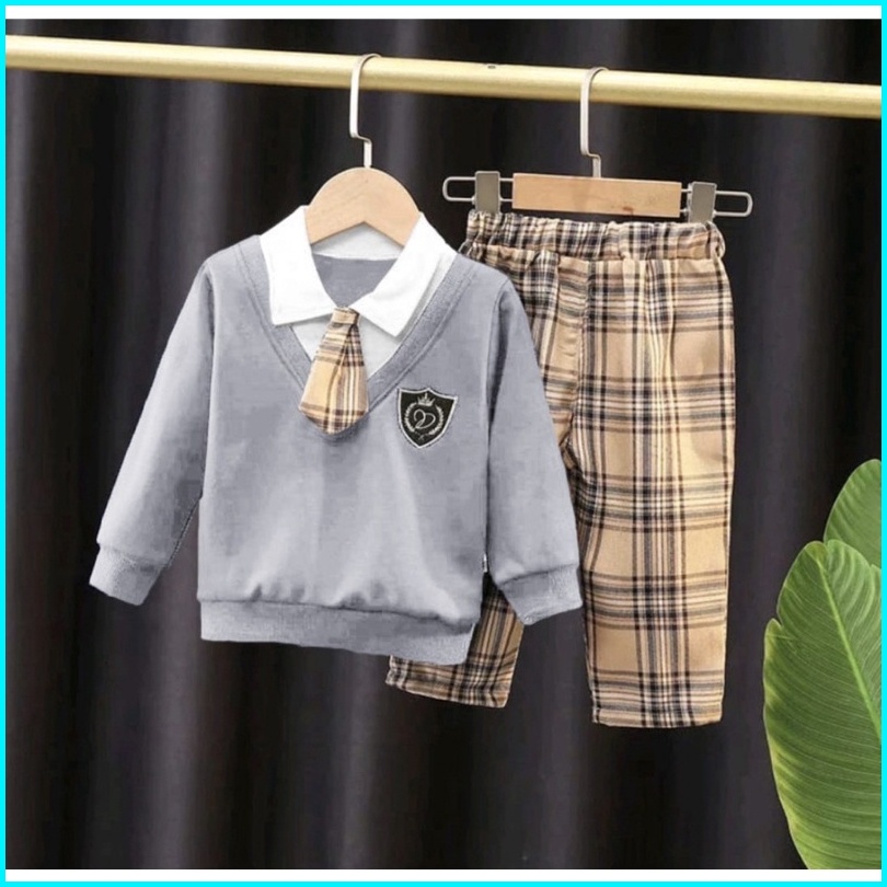 Baju Dan Celana Anak Motif Berdasi School 1-5 Tahun