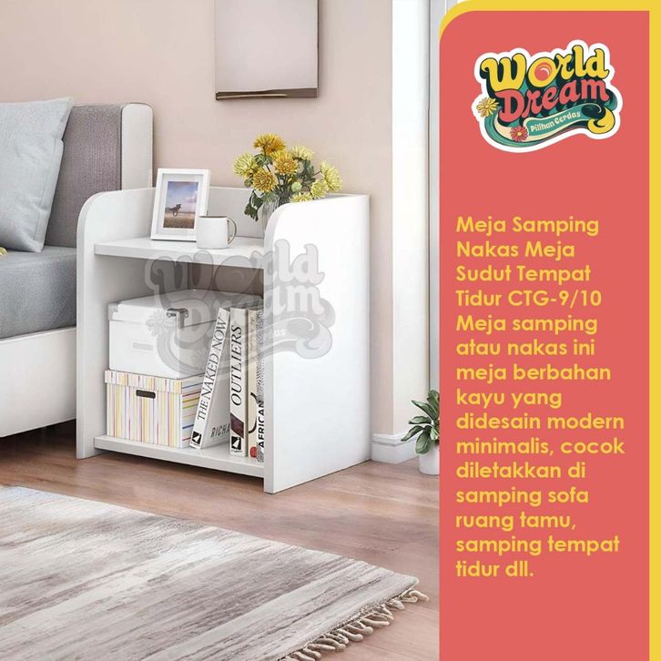 Worldream Meja Kecil Kayu Nakas Minimalis Rak Kecil Meja Disamping
