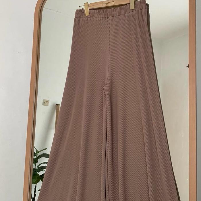 DYALODYA FLOWY KULOT | CELANA KULOT PLISKET WANITA - Mocca