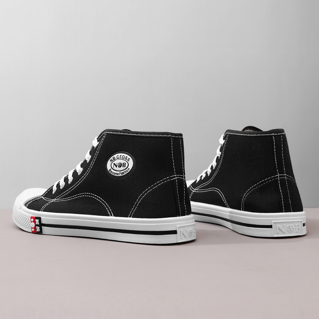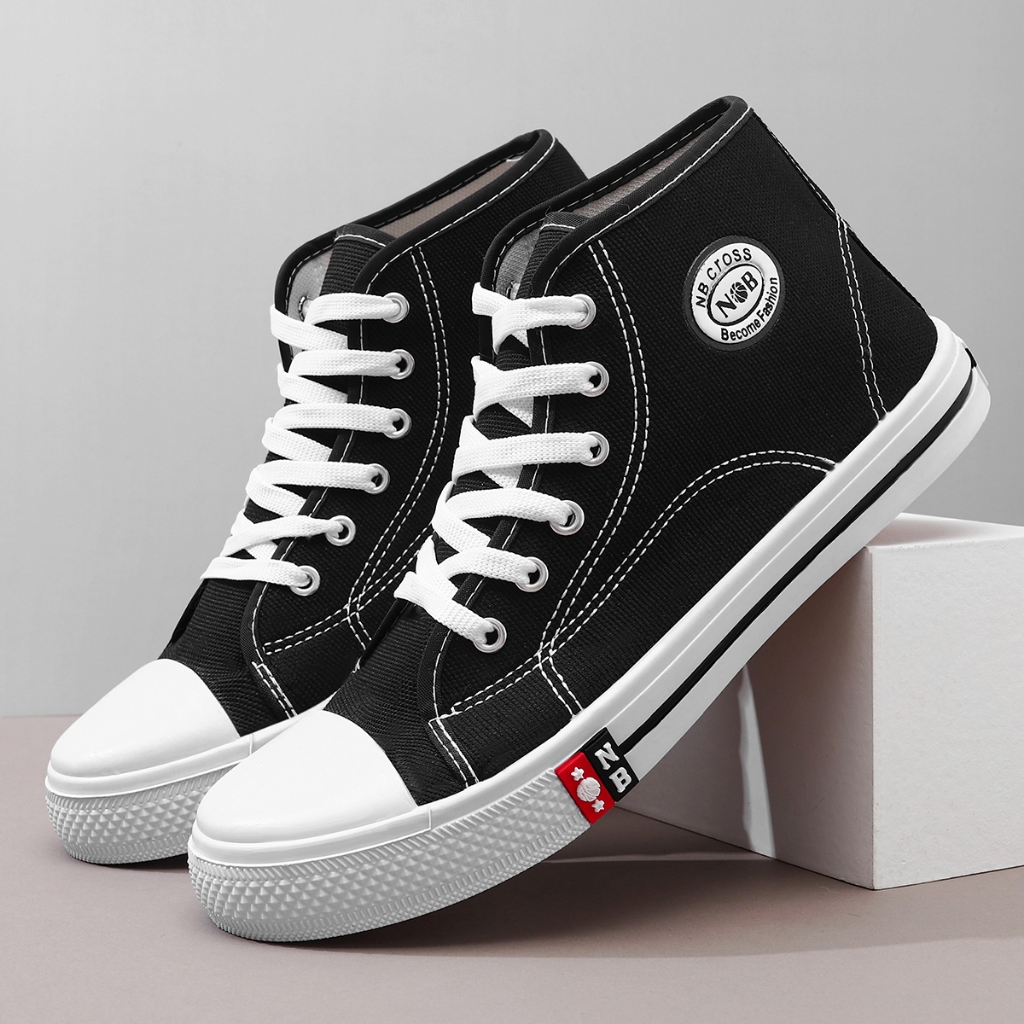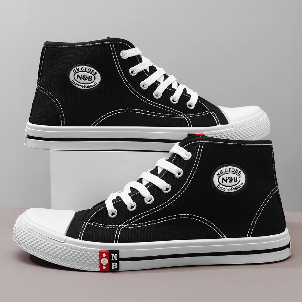 N BOLA B Sepatu Sekolah Formal Tali Bahan Canvas Tinggi Sneakers Sekolah Hitam Cewek Cowok