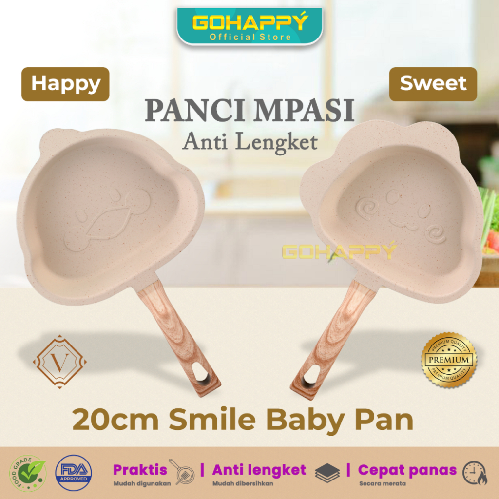 PROMO SMILE BABY PAN Panci mpasi Valry anti lengket 20cm healthy wajan bayi marble granit diatas teflon PFOA FREE