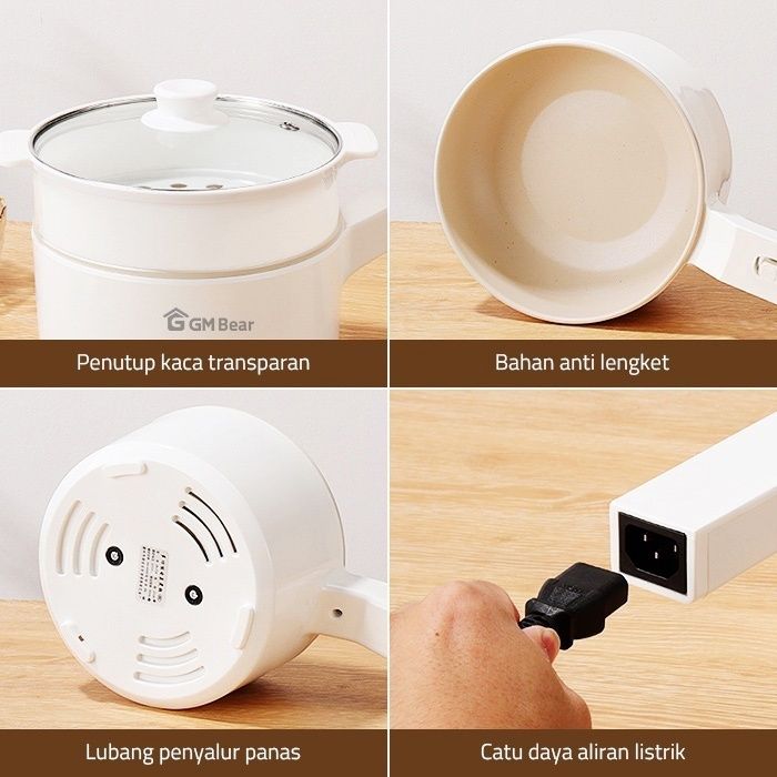 [Star] panci listrik GM Bear Panci Listrik Fry Pan Electric (2in1) 1692 - Panci Penggorengan Keramik Elektrik